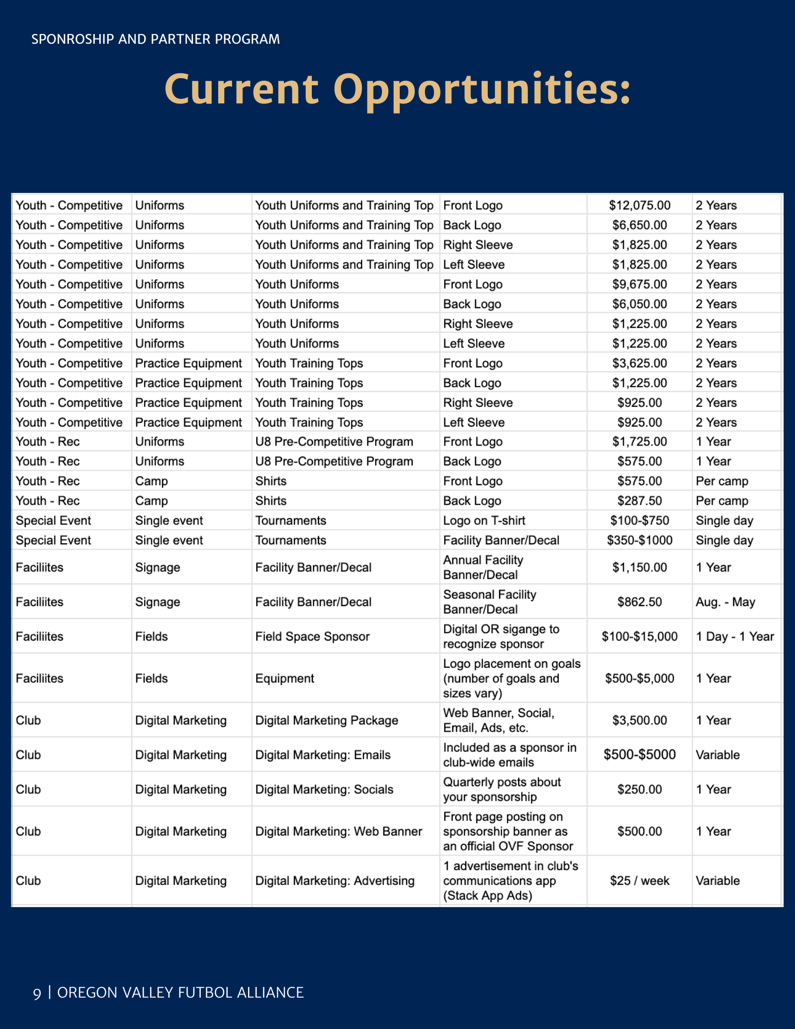 We have a variety of opportunities for businesses and individuals to become OVF Alliance Sponsors. Take a look at our Sponsorship opportunities below and send us a message if you'd like to see our full Sponsorship and Partner Brochure.